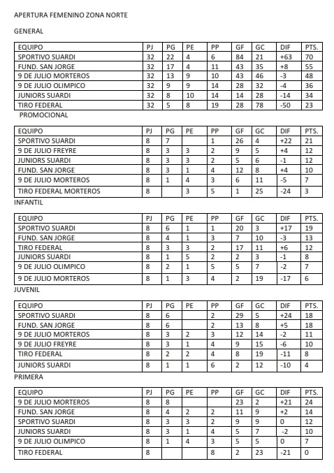 TABLAS GENERALES DE FUTBOL FEMENINO