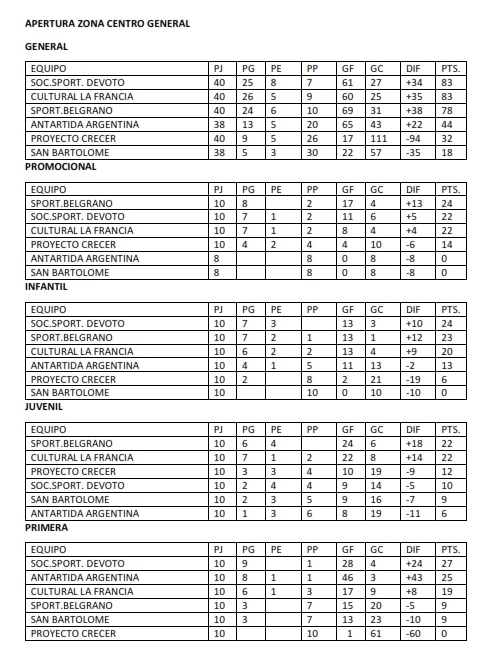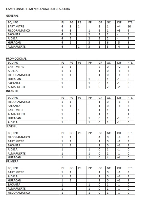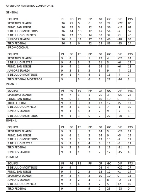 TABLAS GENERALES DE FUTBOL FEMENINO