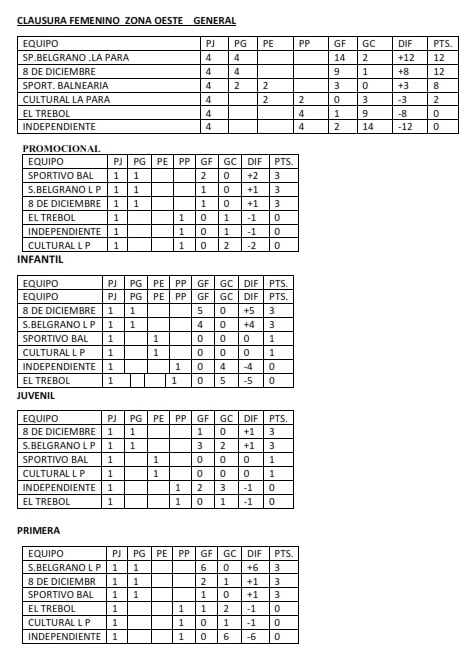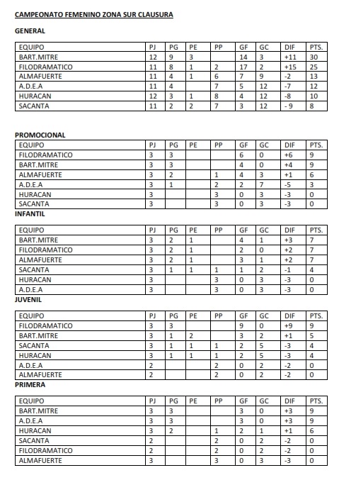 TABLAS GENERALES DE FUTBOL FEMENINO